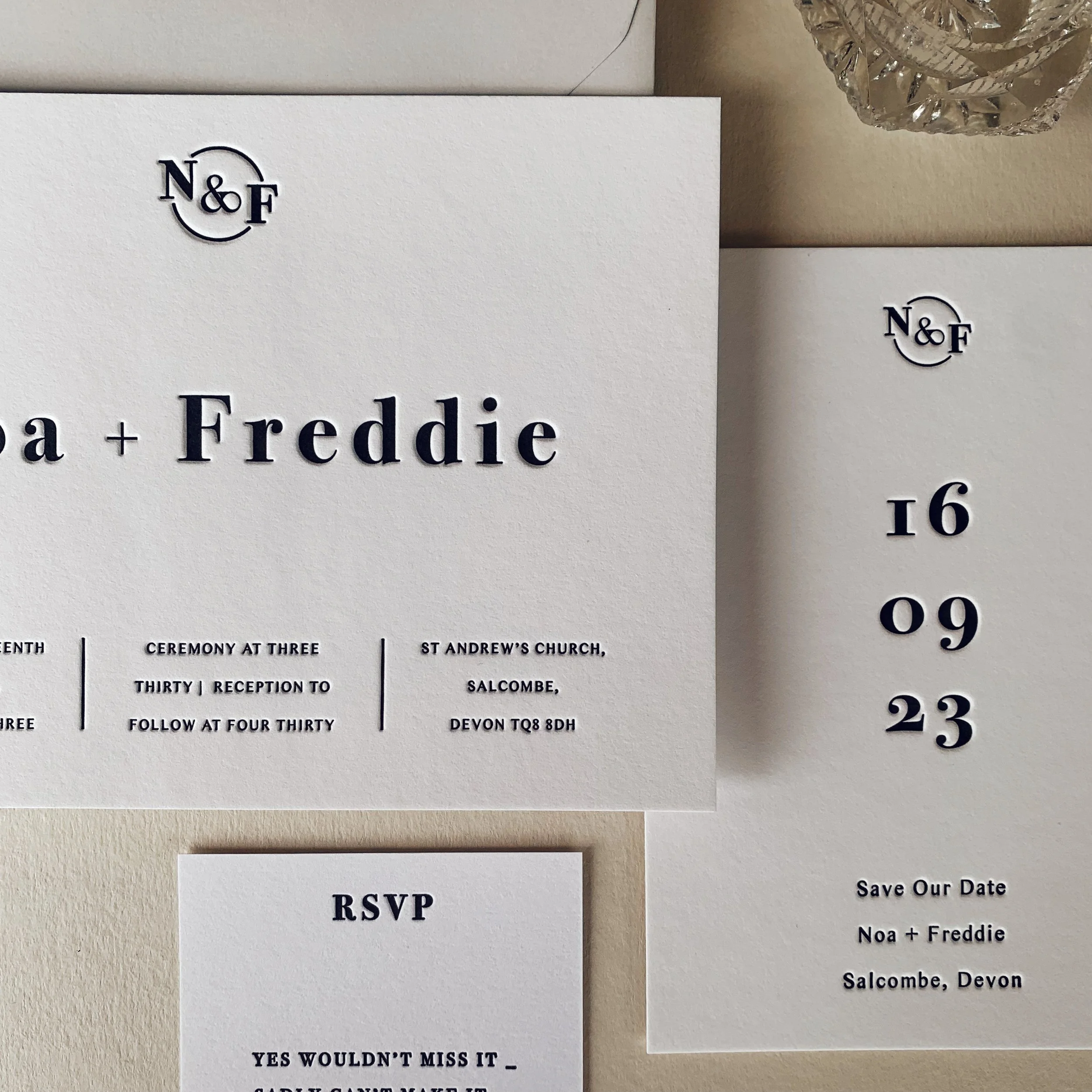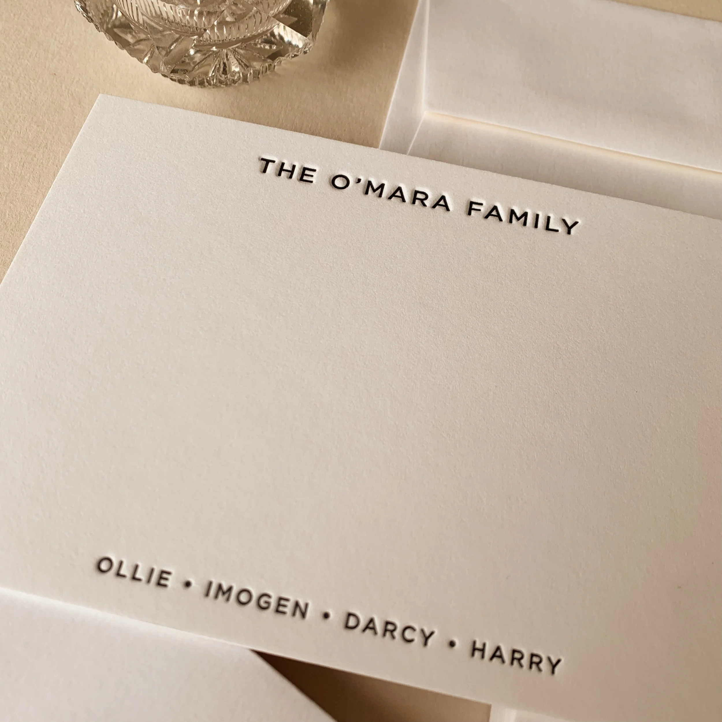 Letterpress is a traditional printing method where the bespoke photopolymer plate is inked up and pushed into the surface of the paper. This creates a beautiful tactile deboss impression, that any stationery lover will swoon over.